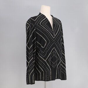 MING WANG Beaded Geometric Design Structured Knit Zip-Up Jacket Black Size M