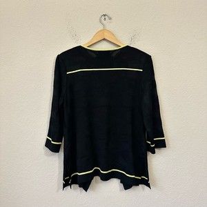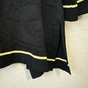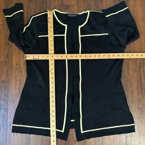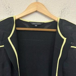 MING WANG Black Knit Suit / Cardigan Jacket with Yellow Trim Sz L W6722