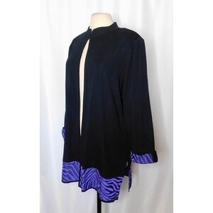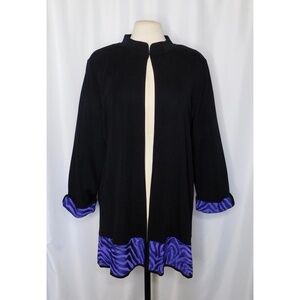 MING WANG Black Purple Knit Cardigan Zebra Knitwear Longline Career Size 2X