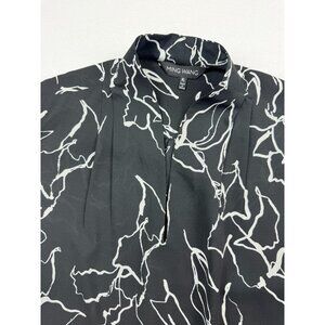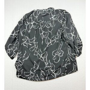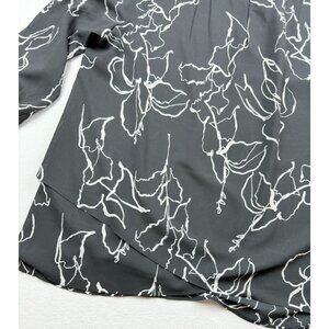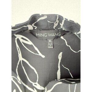 MING WANG Flroal Print Roll Tab Sleeve Top Size XL Womens Black