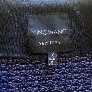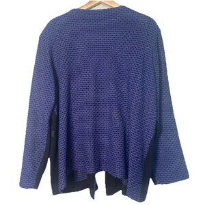 MING WANG Sapphire Tweed Knit Jacket Size 1X Purple Black 3/4 Sleeve Trim