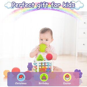 MINGKIDS Montessori cube Toys for 1 Year Old, Toy 6 Pc Multi Sensory Shapes.