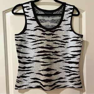MING WANG Sleeveless Zebra Print Sweater Top Brown Cream Black Women’s Size S