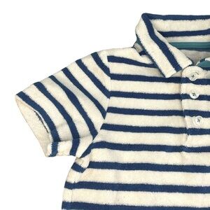 MINI BODEN BLUE WHITE STRIPED 3-BUTTON COLLAR SHORT SLEEVE SHIRT, SIZE 5