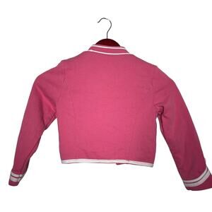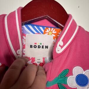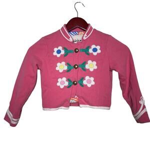 MINI BODEN Floral Appliqué Knit Military Jacket In Rose Pink 5-6yo. Gently used condition no flaws. Your young one will strike up the band in this soft knit jacket accented with flower appliqués, burnished buttons and soutache trim. Front button closure Lined 100% cotton with 100% polyester contrast .Machine wash, line dry Imported