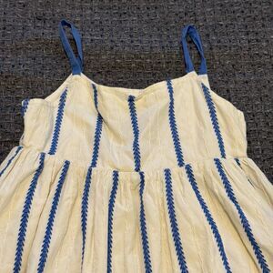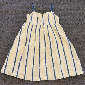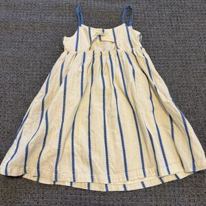 MINI BODEN Kids Back Cutout Dress Ivory Blue Stripe Sleeveless 100% Cotton Lined Back Button Closure