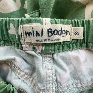 These Mini Boden shorts feature a playful skull print on a soft green background with a drawstring waist and plenty of pockets for treasure