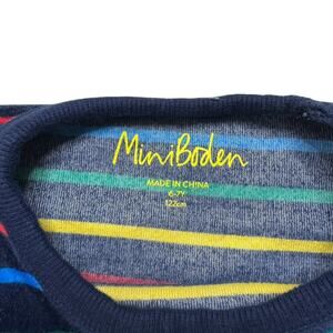MINI BODEN Velour Rainbow Stripe Long Sleeve Tee Size 6-7 Years Blue Soft