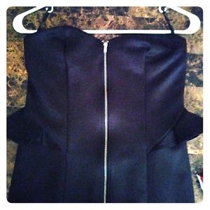 Black Mini Dress with front zipper Strapless dress