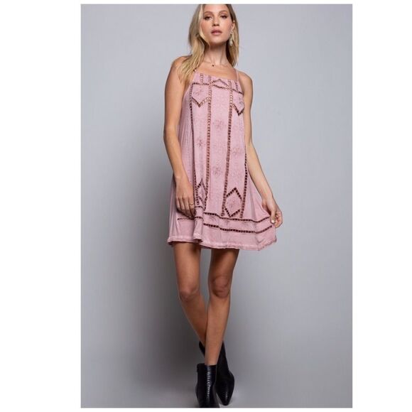 Fringe Trim Hemed Tunic Top / Dress With Floral And Cut Out Embroidery