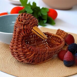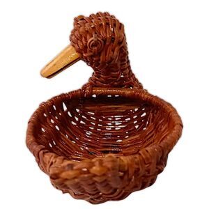 MINI Duck Shaped Wicker Basket Woven Rattan Vintage MCM Brown Wooden Beak Boho. Condition is pre-owned and EXCELLENT condition. No chips, cracks or signs of wear. Measures about 3" x 4". Unbranded. Please see all photos for detailed condition.