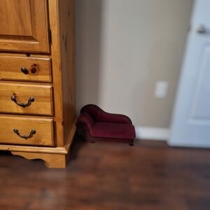 Add a touch of sophistication to your home with this elegant burgundy chaise lounge. Perfect for any living space.
