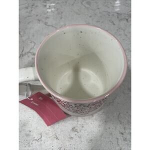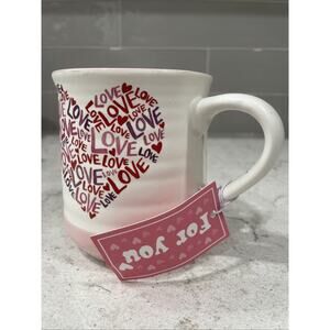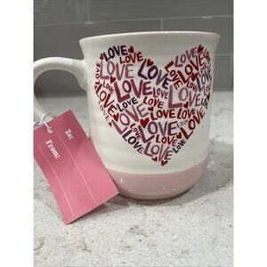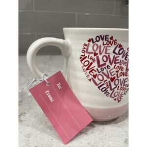Adorable MINI LOVE into LARGE HEART large Coffee Mug Valentine’s Love Gift Tag Stoneware NEW. Large comfortable handle.
