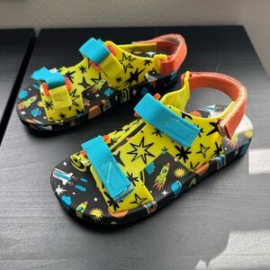 Gently used with lots of life left MINI MELISSA x FABULA spaceship solar system PING PONG rubber SANDALS size 4