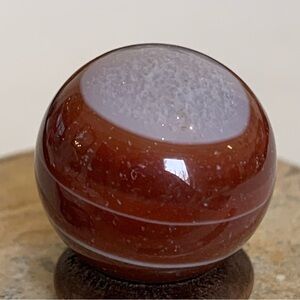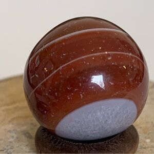 MINI Banded Red Carnelian Agate Crystal Sphere with Wood Display Stand.