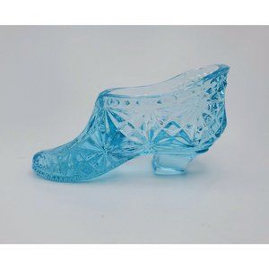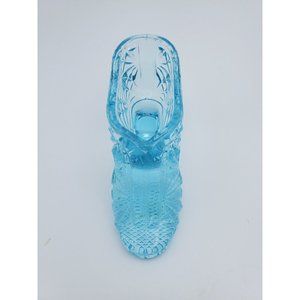 MINIATURE AQUA BLUE GLASS SHOE GUERNSEY GLASS COMPANY VINTAGE SLIPPER