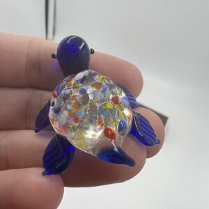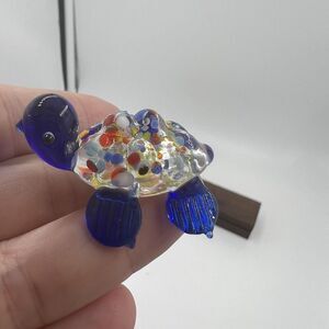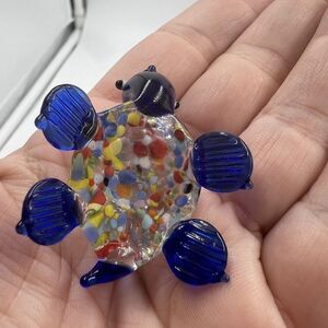 MINIATURE Art GLASS Blue Turtle FIGURINE Multicolor Tiny Collectible Trinket