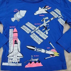 MINI BODEN ROYAL BLUE NASA SPACESHIP LONG-SLEEVE TEE, SIZE 3-4