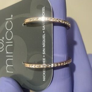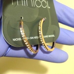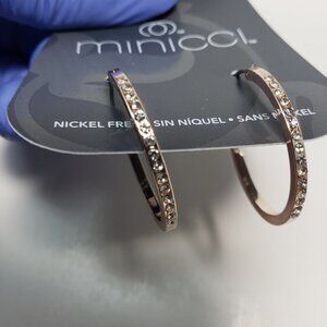MINICCI polished rose gold-tone sparkling crystal hoop earrings. These elegant earrings for women feature a polished rose gold-tone and are adorned with sparkling crystals, making them a perfect accessory for adding a touch of glamour to any outfit. Ideal for casual and formal occasions, these hoop earrings are a stylish addition to any jewelry collection. NWT