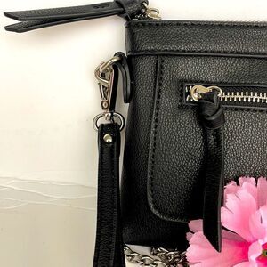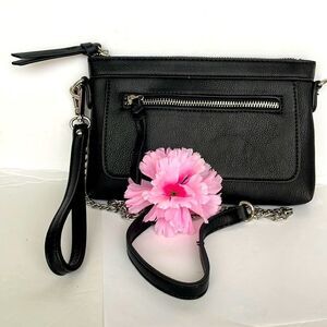 This gorgeous pebbled leather like bag can be used as a wristlet, crossbody, or clutch.