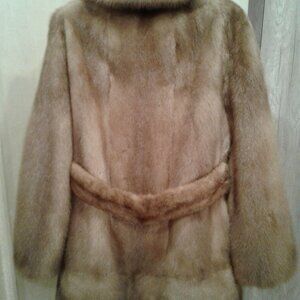 MINK COAT JACKET REAL GENUINE NATURAL BROWN TAN FUR M MEDIUM L LARGE MID-LENGTH