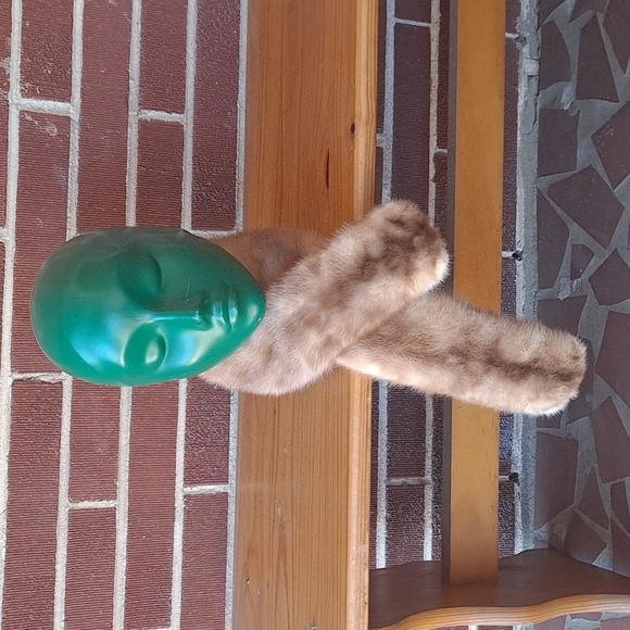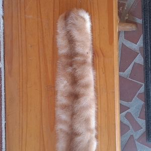 We have a mink scarf for sale. It is in very good condition. It is genuine mink Fur. It has a sleeve in the back which you can see on the pictures where you slip one side through the other and you can pull it tight up on your neck. It also has 2 clips on each end that can be pinned down to any of your garments. Please look at all pictures and contact us for more information.