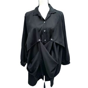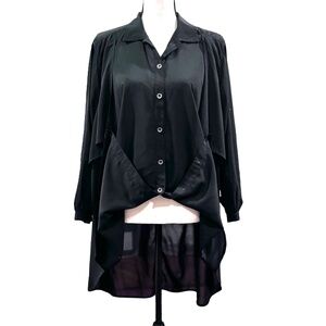 MINKPINK Black multiway shirt. Large extra fabric square down the front on each side with a buttonhole in the corner. There are 2 extra buttons below the last button with a hole down the placket. The extra buttons can be attached to the extra pieces of material on top to create different looks. See photos. In very good preowned condition.