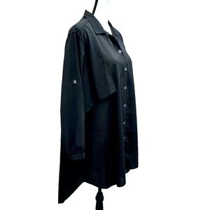 MINKPINK BLACK OVERSIZED MULTIWAY BUTTON DOWN SHIRT WITH ROLL TAB SLEEVES