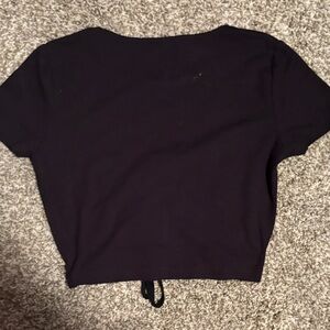 Stylish black crop top with ruched front. Perfect for casual outings.