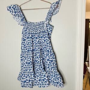 MINKPINK Blue Ithica Square Neck Cotton Print Ruffle Mini Dress Size Small