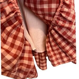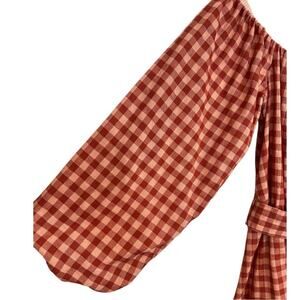 MINKPINK Cora mini plaid dress in blush/rust puff sleeves