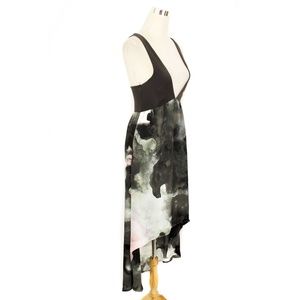 MINKPINK Gray Watercolor Plunging Neckline Lace-Up Back Hi Low Tunic Dress