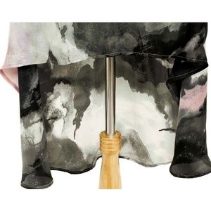 Incredibly stunning MINKPINK gray knit plunging neckline empire waist top with silky smokey abstract pattern high low skirt tunic dress. Almost like a halter neckline that hooks in the back with the amazing corset lace up back detail. The top is lined, the skirt is unlined & semi sheer. May need to wear this with a slip, shorts, leggings/tights, etc. Rare piece!