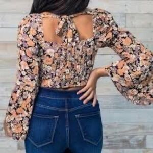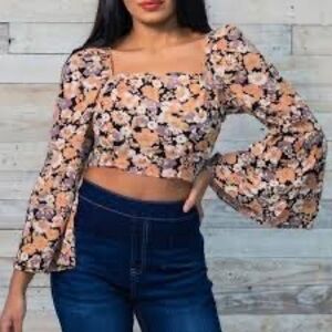 MINKPINK Love Charm Flare Sleeve Crop Top Size S