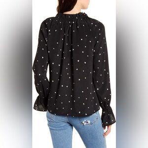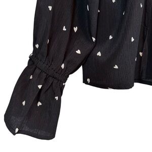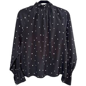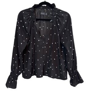 MINKPINK Me & You Heart Print Satin Top Black White Long Sleeve Size Medium