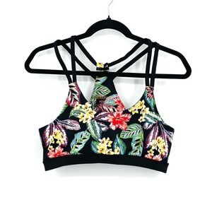 MINKPINK Move Black Colorful Floral Print Strappy Wireless Sports Bra Size Large