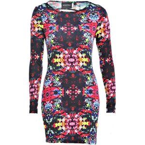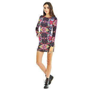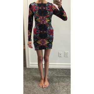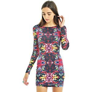 MINKPINK "The Eden Project" Long Sleeve Open Back Multicolored Mini Bodycon Dress