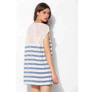 Breezy, soft knit tee from Australian label MINKPINK with a sheer mesh top and a striped bodice. Cut in an easy, relaxed fit with square-cut sleeves and a scoopneck.