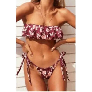 MINKPINK Rhapsody Tie Bikini Bottom Burgandy Size Small NWT