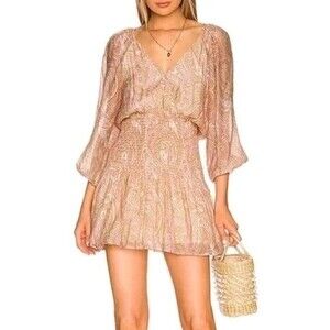 MINKPINK Sz M Catalina Mini Dress. Multicolor Pink Paisley Smocked Waist NWT