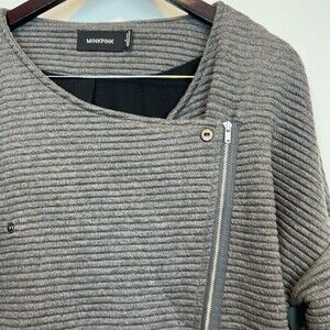 MINKPINK Take Care Biker Zip Jacket Ribbed Gray SZ Lg