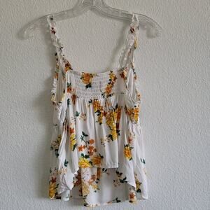 MINKPINK Tank Top Cropped Boho Floral Sleeveless Size Medium White & Yellow