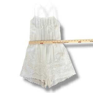MINKPINK White Eyelet Embroidered Romper XS Boho Romantic Lace Scallop Hem