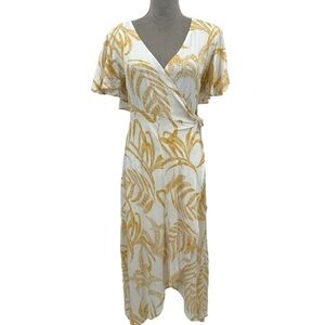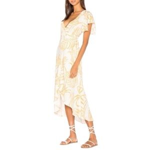 MINKPINK X Revolve Paradise Waterfall Wrap Dress - Yellow Cream - Large - NWT