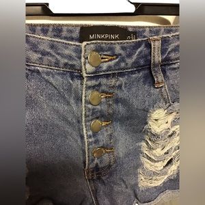 MINKPINK distressed 100% cotton denim shortie Size Small.