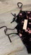 Chic black swimsuit with pink floral pattern and adjustable ties at the sides.