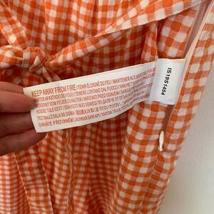 MINKPINK orange gingham picnic smocked strapless wide leg jumpsuit