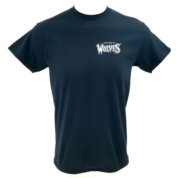 MINNESOTA TIMBERWOLVES Double Script Retro Logo BLACK Basketball Tee. Size: S, M, L and XL