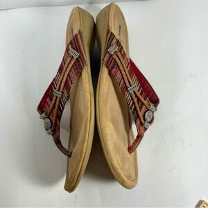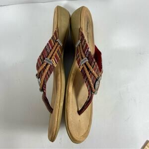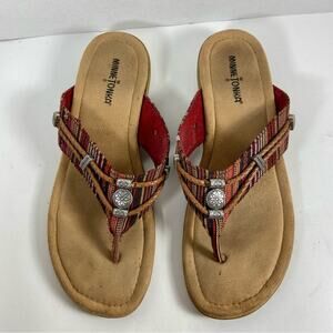 MINNETONKA Aztec print southwestern style suede thong flip flops western beaded