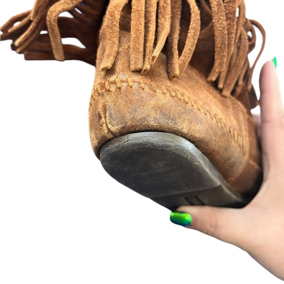 MINNETONKA BROWN SUEDE FRINGE MOCCASIN MID-CALF BOOTS STYLE 1632 SZ 6.5